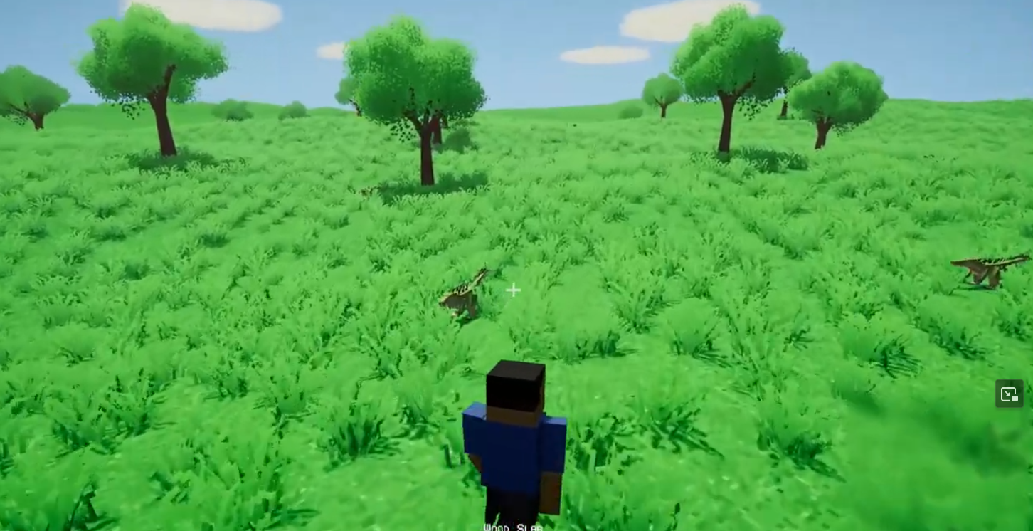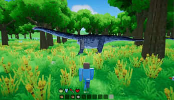 Forgewild is a game about exporation. Currently it has a raptor and Diplodocus model with some animations. Player character is rudimentary but can walk around and explore. Terrain generation supports a warm and cold biome with trees and plants. No mining is supported, but you can place and destroy the blocks in your inventory.